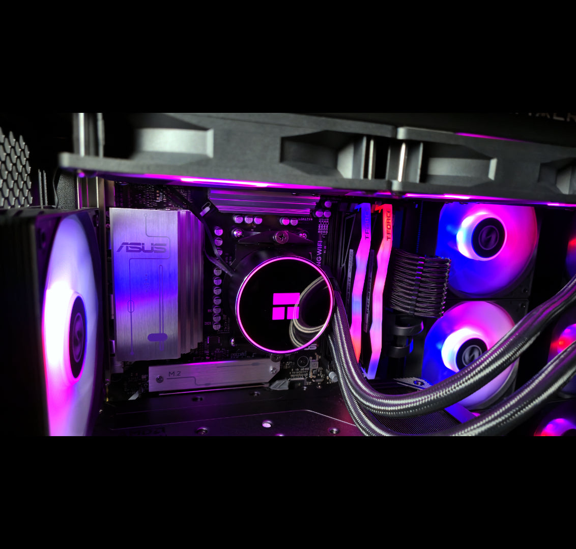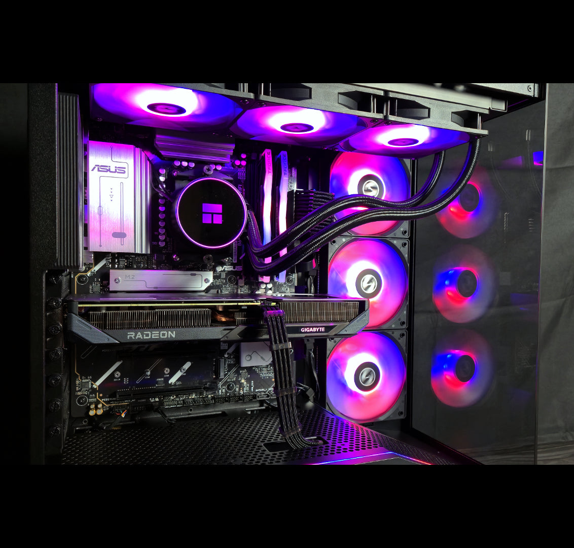 Please Note: Photos shown with optional sleeved cables and the AIO Liquid Cooler option which includes the top fans. Top fans are NOT included with Air Coolers. To add top fans to your Air Cooler build, or for optional sleeved cables, please add to cart from the accessories page in the link below.